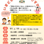 2025年11月25日 / 最終更新日 : 2025年11月25日 大田・生活者ネットワーク おしゃべりカフェ 11/11(火)おしゃべりカフェ「今どきの学校どうですか?」感想 不登校児にどのような対応ができるかの話題になったとき、 昭和時代、子育てをされていた方々からも意見を聞くことができて、 現代ならではという訳では無く、いつの時代にもあることだと知れて勉強になりました。 語らう内に、その場 […]
