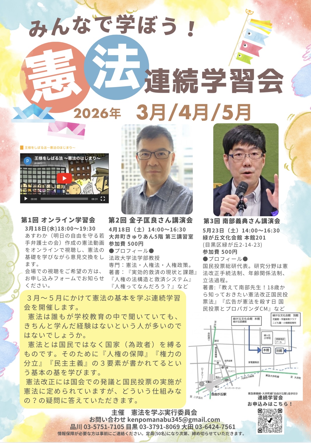 みんなで学ぼう!憲法連続学習会(3月/4月/5月)